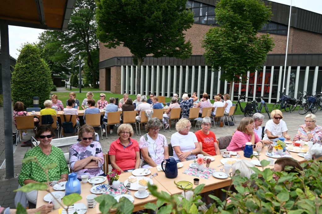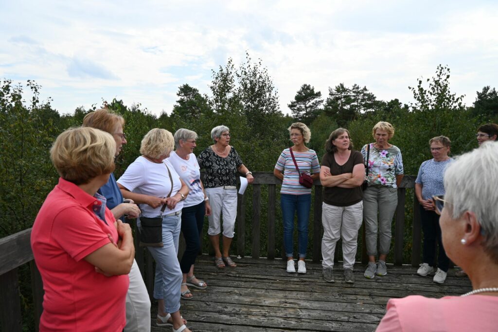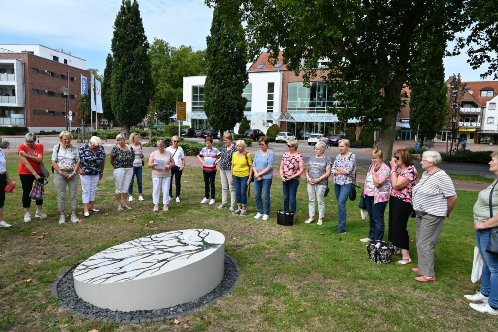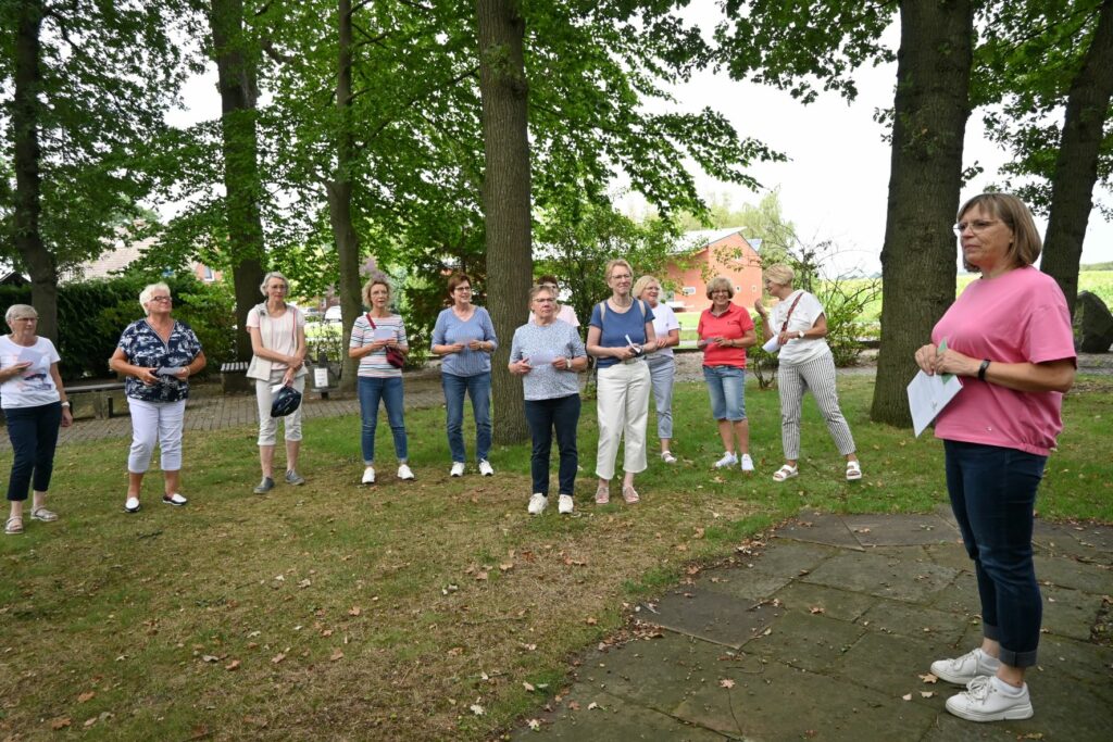 Am Montag, den 22. August 2022, fand die Radsternfahrt der kfd-Gruppen in der Pfarreiengemeinschaft statt. Maria Lambers begrüßte rund 50 Teilnehmende und stellte mit dem Wurzelkreis die erste Station des Tages vor. Im Anschluss konnten sich alle bei strahlendem Sonnenschein vor der Arche zunächst bei Kaffee und Kuchen stärken, bevor die gemeinsame Radtour durch Spelle startete. In zwei Gruppen wurden jeweils die Englandecke und der Moorlehrpfad besucht. Der gemeinsame Abschluss fand am neugestalteten Alten Kirchplatz statt.