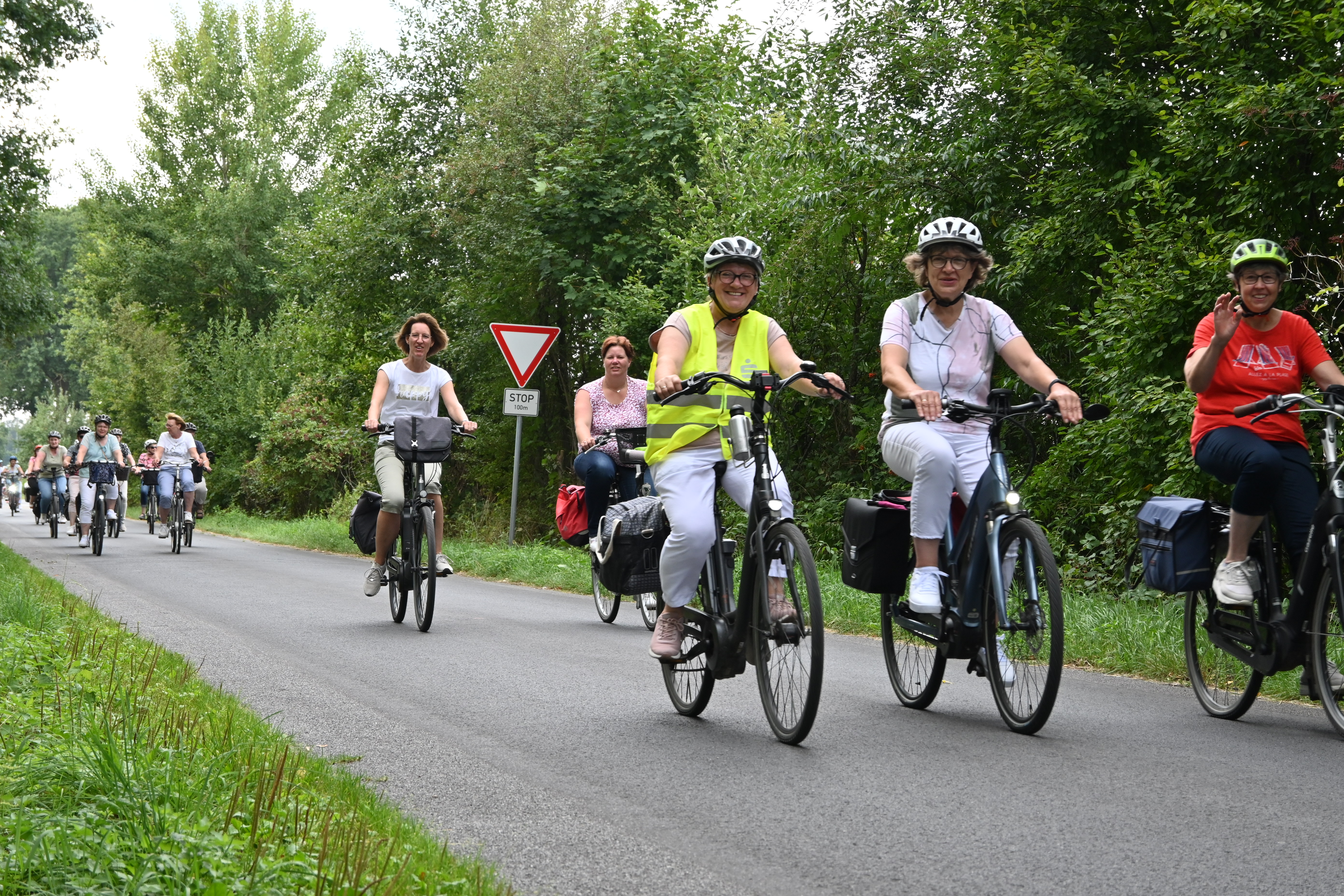 Am Montag, den 22. August 2022, fand die Radsternfahrt der kfd-Gruppen in der Pfarreiengemeinschaft statt. Maria Lambers begrüßte rund 50 Teilnehmende und stellte mit dem Wurzelkreis die erste Station des Tages vor. Im Anschluss konnten sich alle bei strahlendem Sonnenschein vor der Arche zunächst bei Kaffee und Kuchen stärken, bevor die gemeinsame Radtour durch Spelle startete. In zwei Gruppen wurden jeweils die Englandecke und der Moorlehrpfad besucht. Der gemeinsame Abschluss fand am neugestalteten Alten Kirchplatz statt.