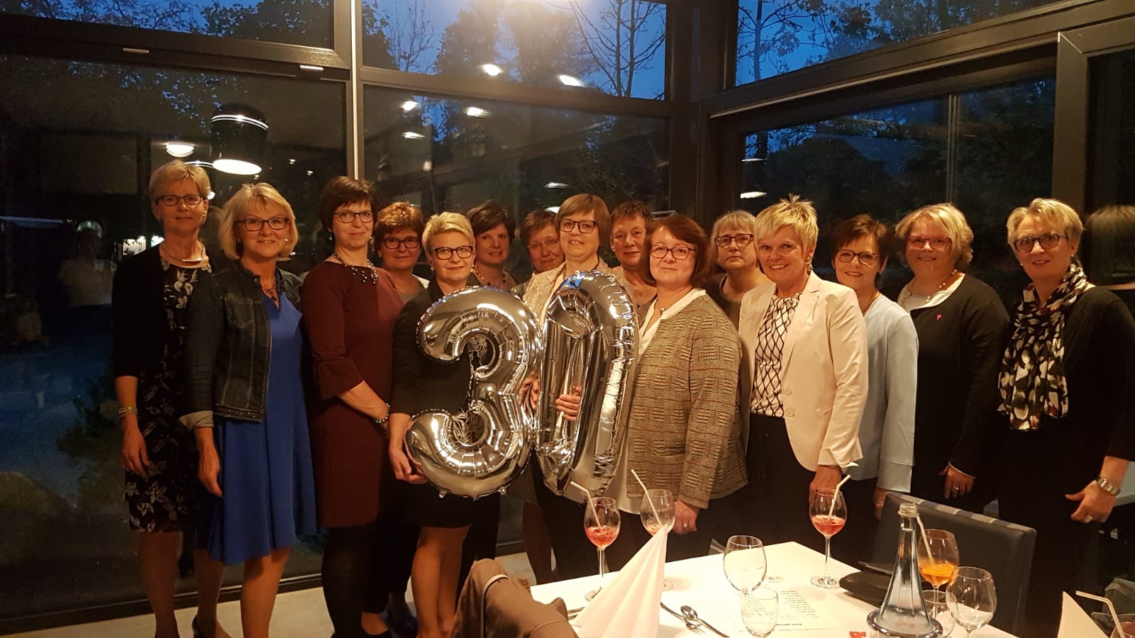 So trafen die Damen nach und nach in der Gaststätte Helming in Lünne ein, wo der Tisch festlich gedeckt auf sie wartete. Eine große 30 aus silbernen Luftballons schwebte in der Luft und erinnerte an den Anlass, der mit einem Festmenü und einigen guten Tropfen angemessen gewürdigt wurde.