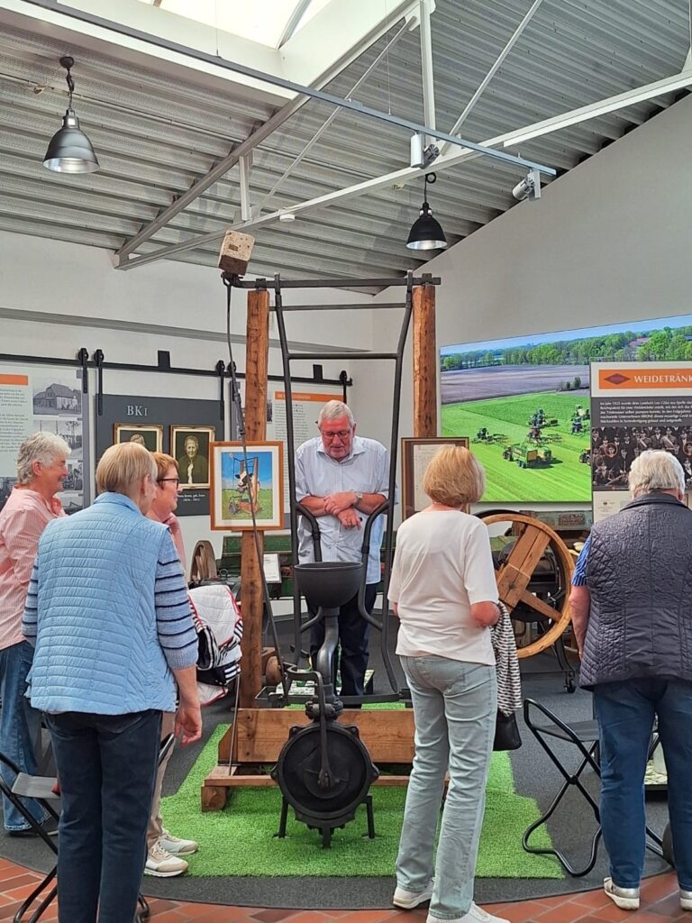 Die Führung wurde kompetent von Ludger Gude, Josef Schütte und Georg Holterhues geleitet. Besonders hervorzuheben ist die informative und anschauliche Art, wie Ludger Gude die spannende Geschichte des Museums und der Familie Krone erklärte, die viele persönlich kennen. Die Teilnehmer lauschten gebannt, während er Anekdoten und wichtige Meilensteine der Unternehmensgeschichte präsentierte. Besonderes Interesse fand der Erinnerungsraum des verstorbenen Dr. Bernard Krone.