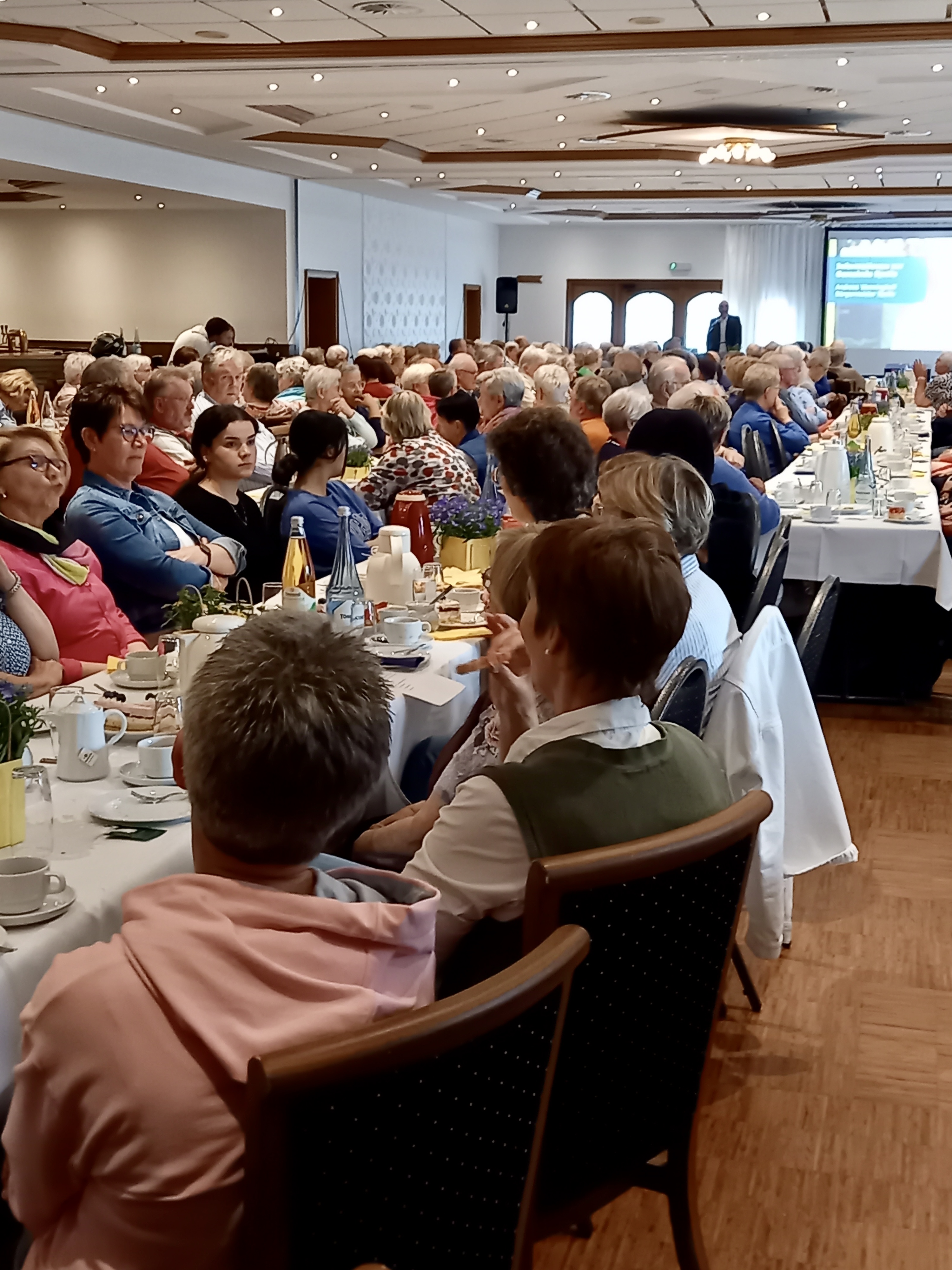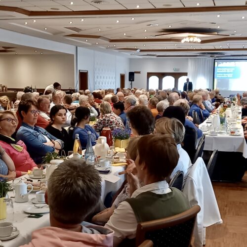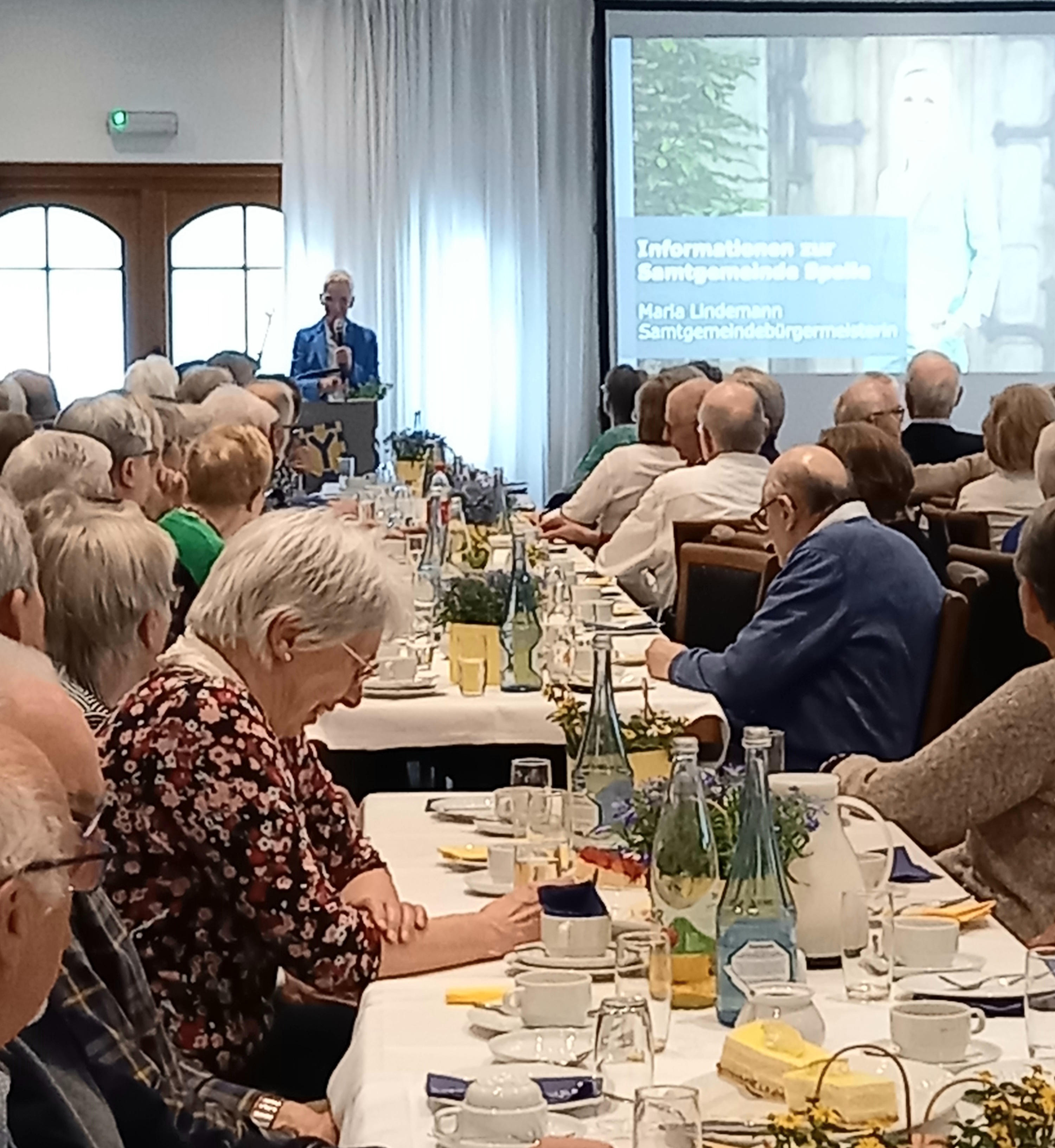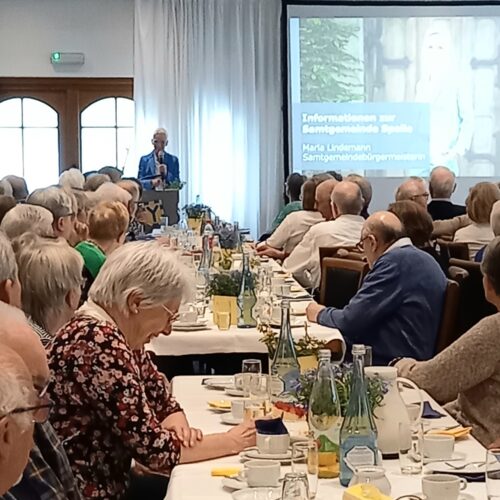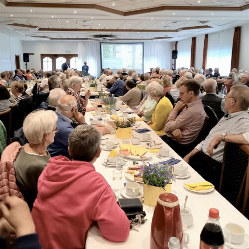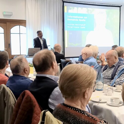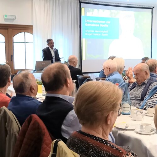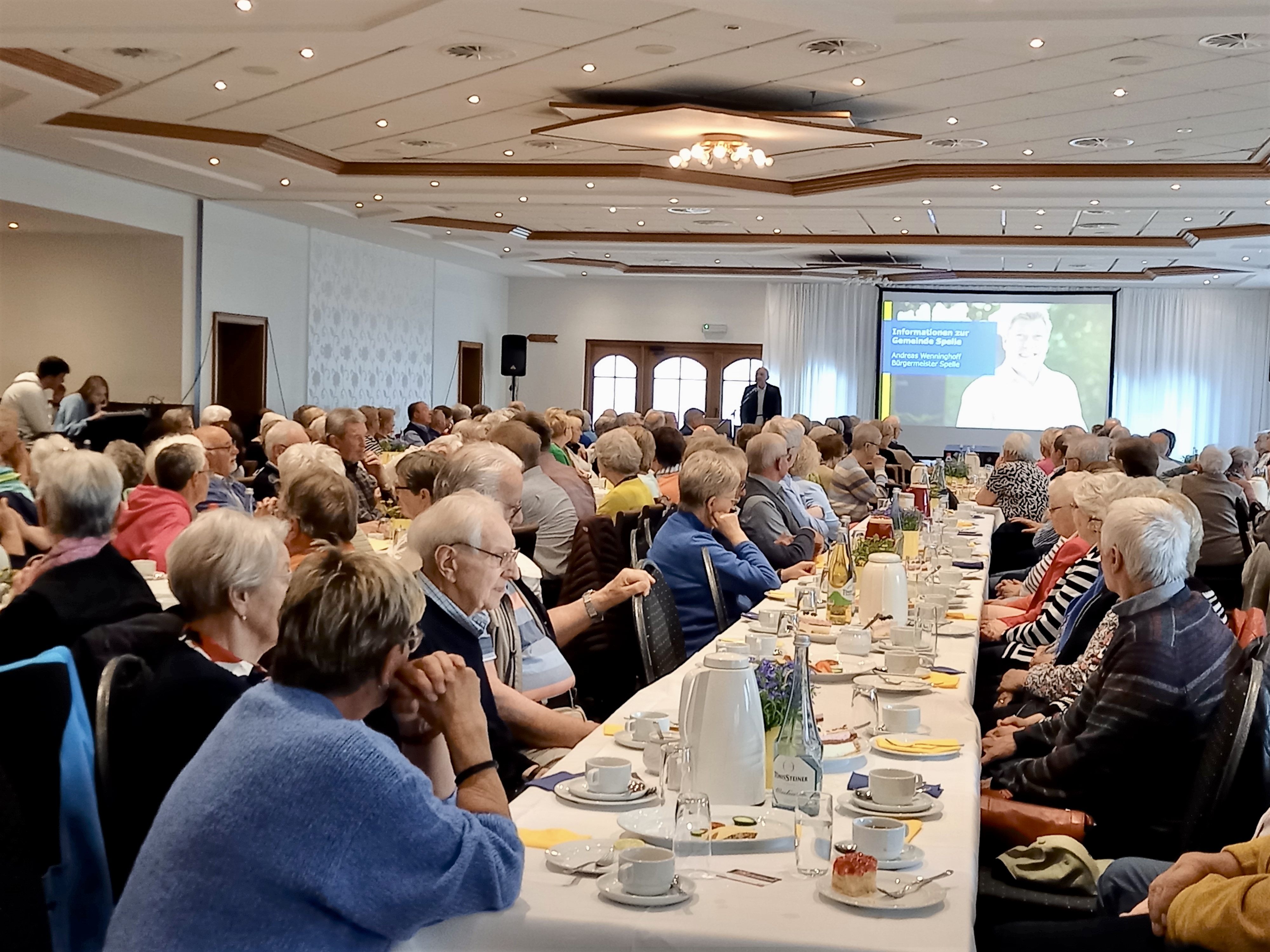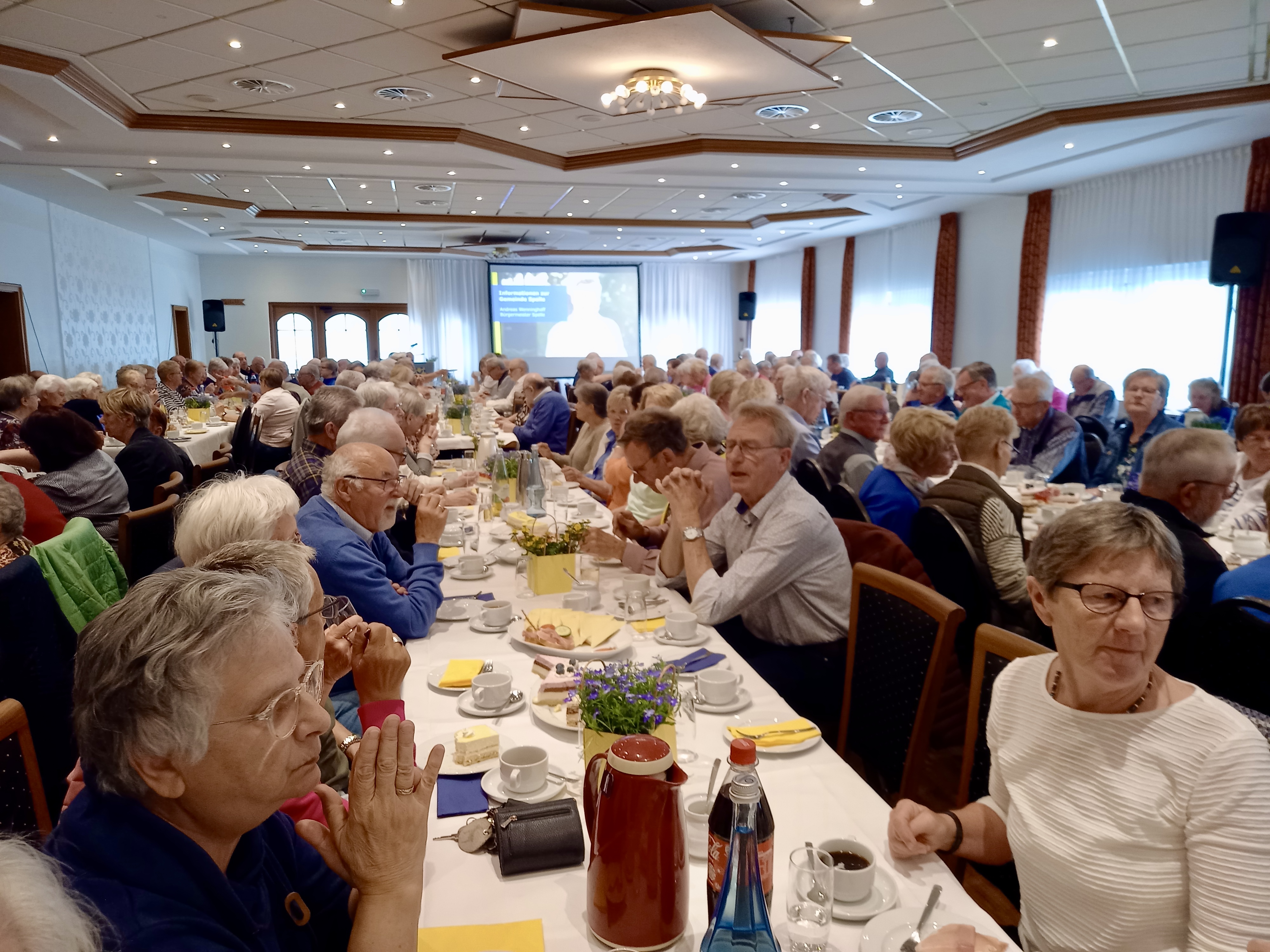 Ein voller Saal nach vierjähriger Pause: Fast 300 Gäste sind der Einladung der katholischen Frauengemeinschaft Spelle, der ev.-luth. Kirchengemeinde sowie der Gemeinde Spelle zum diesjährigen Seniorennachmittag gefolgt. Alle Seniorinnen und Senioren der Gemeinde Spelle waren mit ihren Partnerinnen und Partnern eingeladen. In diesem Jahr fand der Nachmittag im Saal der Gaststätte Spieker-Wübbel in Venhaus statt, da das Festzelt auf dem Markelo-Platz nicht rechtzeitig aufgebaut werden konnte.