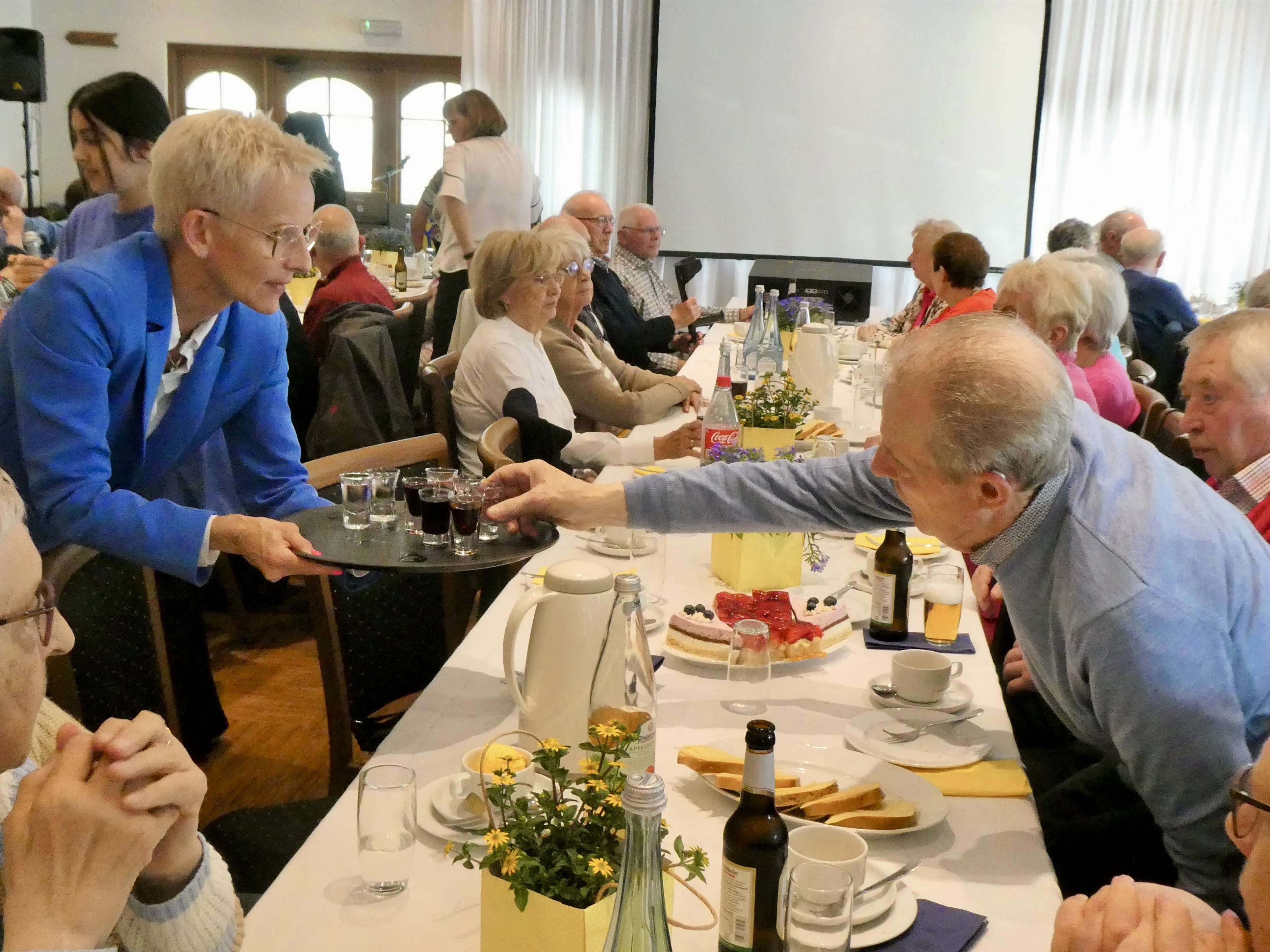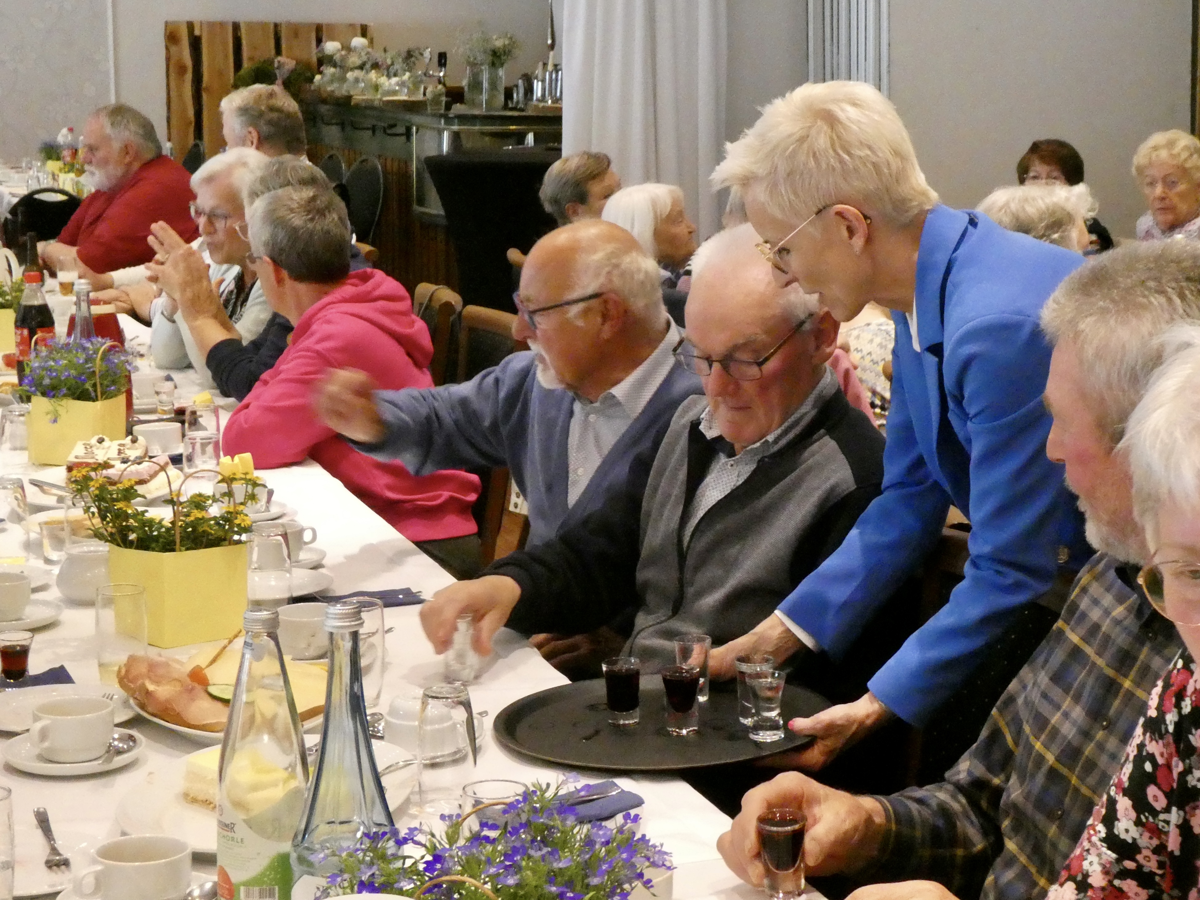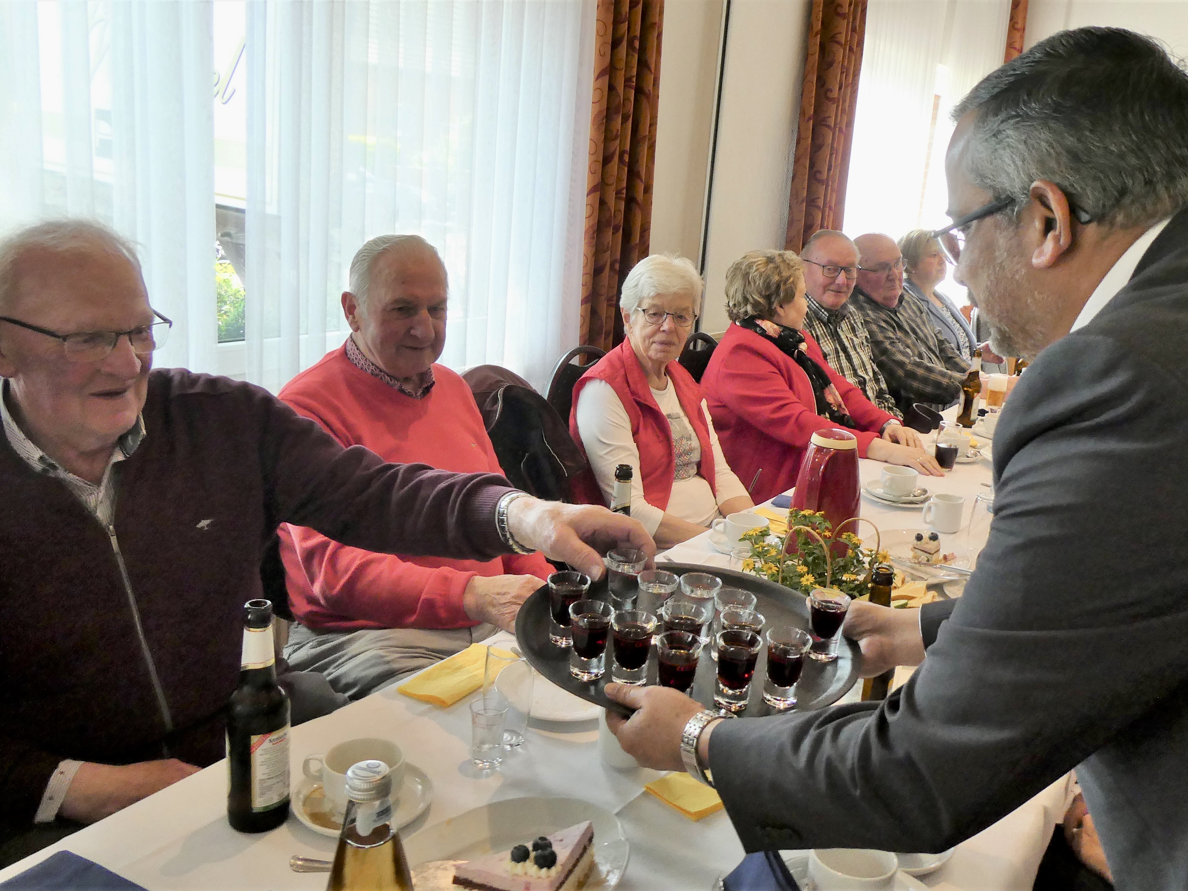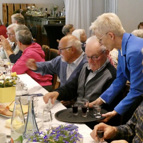 Zur schon traditionellen Schnapsrunde gingen die Pastöre, der Bürgermeister und die Samtgemeindebürgermeisterin, mit Unterstützung der Mitarbeiterinnen, durch die Reihen und versorgten die Gäste mit einem Klaren oder einem Likör.