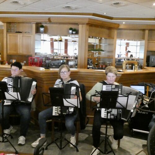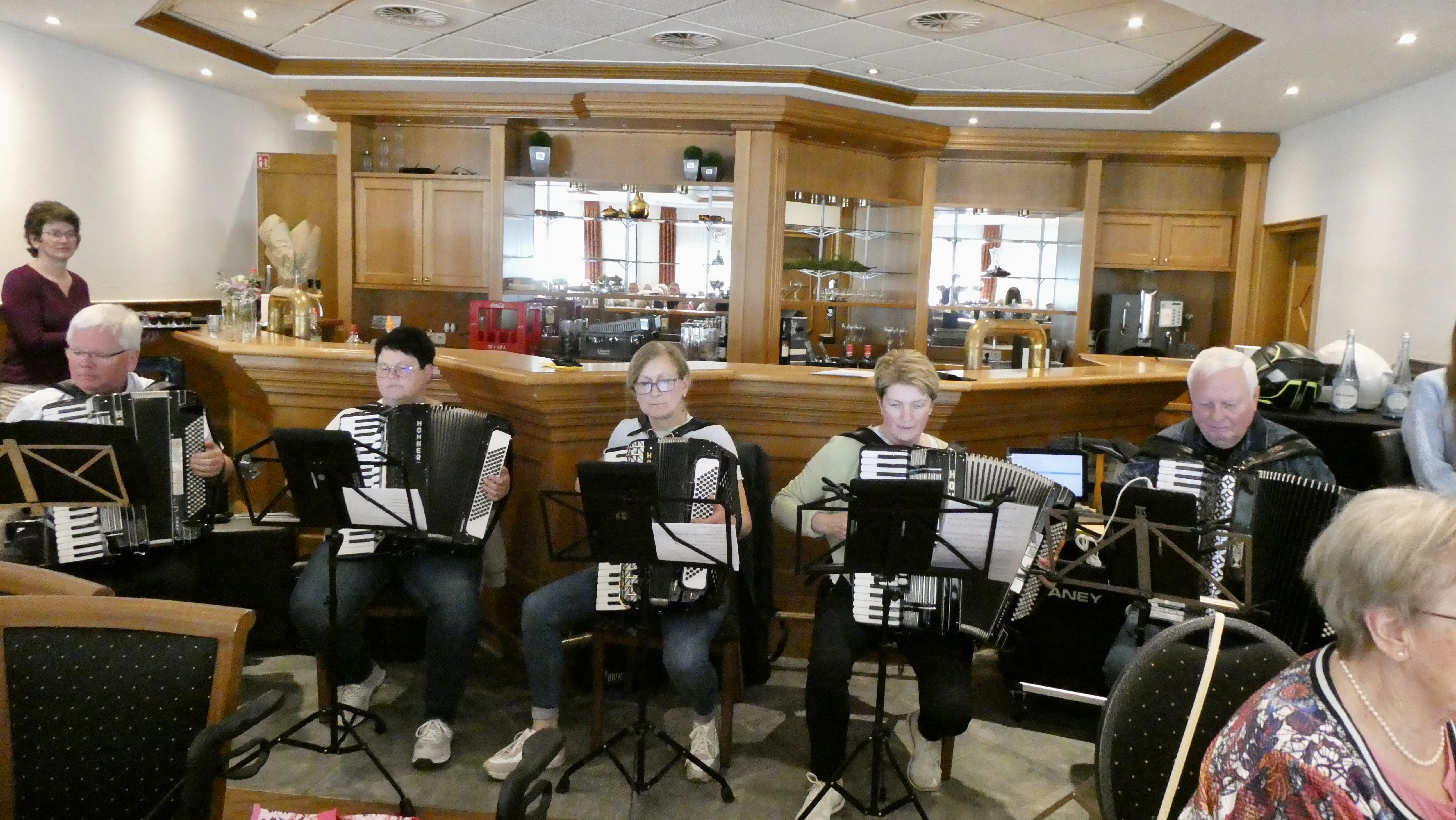 Als Überraschungsgäste kamen „Heino“ und „Kerstin Ott“ alias Marion Hölscher und trugen zur Unterhaltung bei. Zu den bekannten Stimmungslieder wurde kräftig mitgesungen. Für gute Unterhaltung mit schwungvoller Volksmusik sorgten die „Tastenrowdys“ unter der Leitung von Jürgen Prause auf ihren Akkordeons.